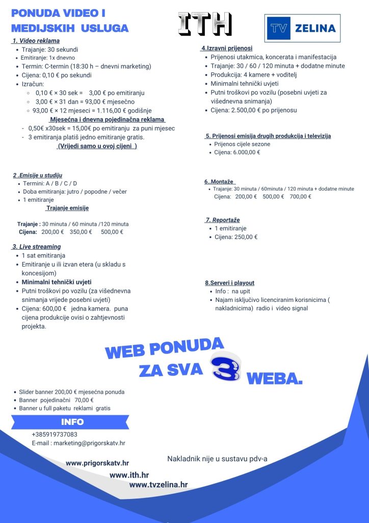 Zahvaljujemo Vam na korištenju web-stranica www.ith.hr , www.prigorskatv.hr i www.tvzelina.hr